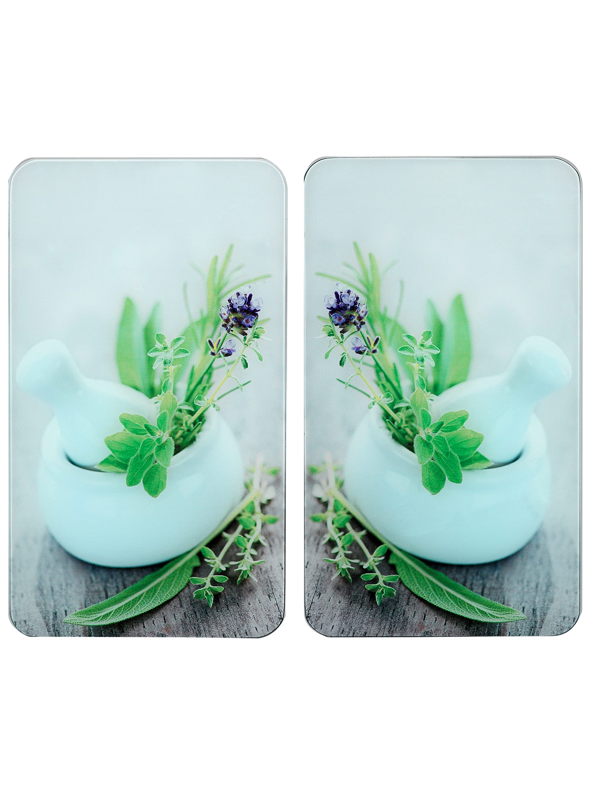 Bekennen Sie Farbe in der Küche! Diese Glas-Abdeckplatten mit farbigem Motiv ziehen mit Sicherheit bewundernde Blicke auf sich. Ihr Herd wird zudem zuverlässig geschützt. Ob Glaskeramik-, Elektro-oder Gasherd, die variablen Füße halten stets den nötigen Abstand. Die kratzfeste und porenfreie Oberfläche verhindert das Einnisten von Bakterien und Gerüchen. Extrem robust und praktisch unzerbrechlich. Für alle Herdarten. 2 Stück. Ca. 52 x 30 cm.