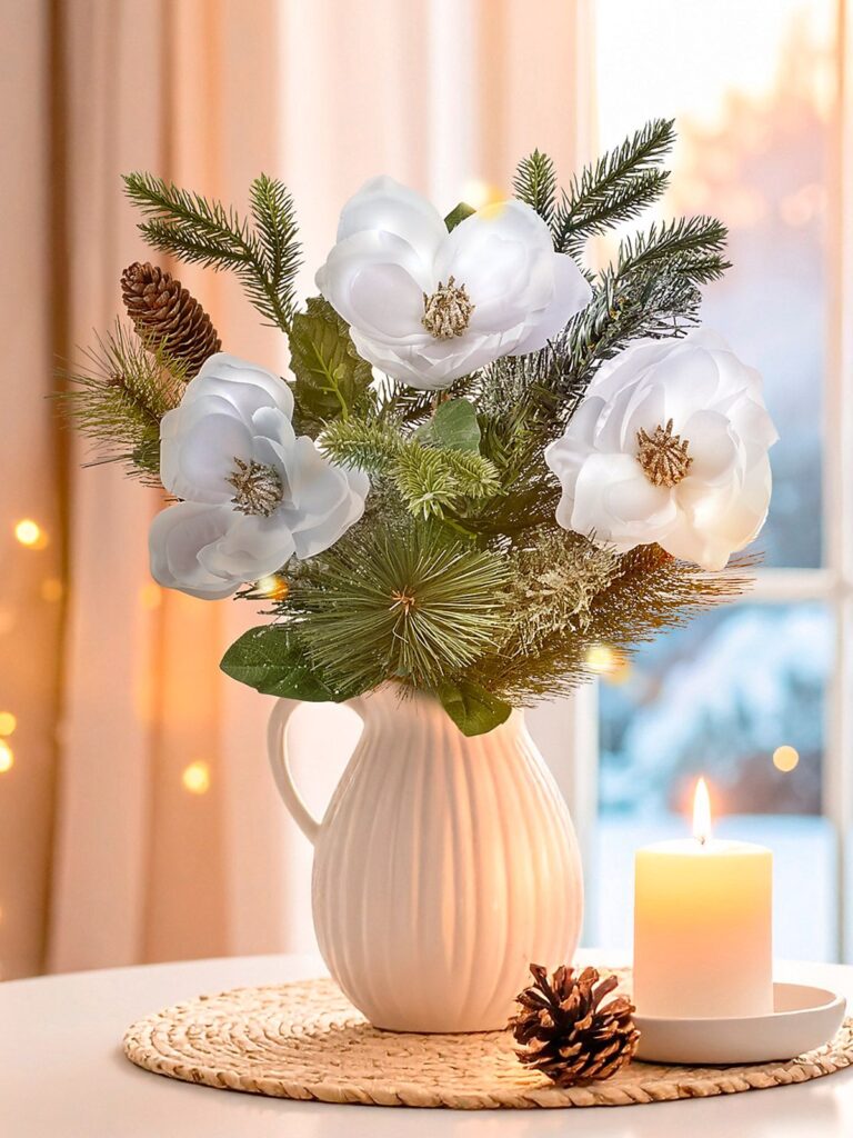 Kunstblumen erobern dieses Jahr zu Weihnachten das Zuhause. Im Wohn- oder Esszimmer, im Flur oder auch im Badezimmer hebt das künstliche Grün die Stimmung! Viele Gestecke und Arrangement sind geschmackvoll dekoriert und die Tannenzweige und Blüten sind kaum von echten zu unterscheiden. Zudem sind die Schmuckstücke aus pflegeleichtem Polyester und Kunststoff gefertigt und müssen nur ab und zu ein bisschen abgestaubt werden. Ideal für alle, die nicht viel Zeit haben.