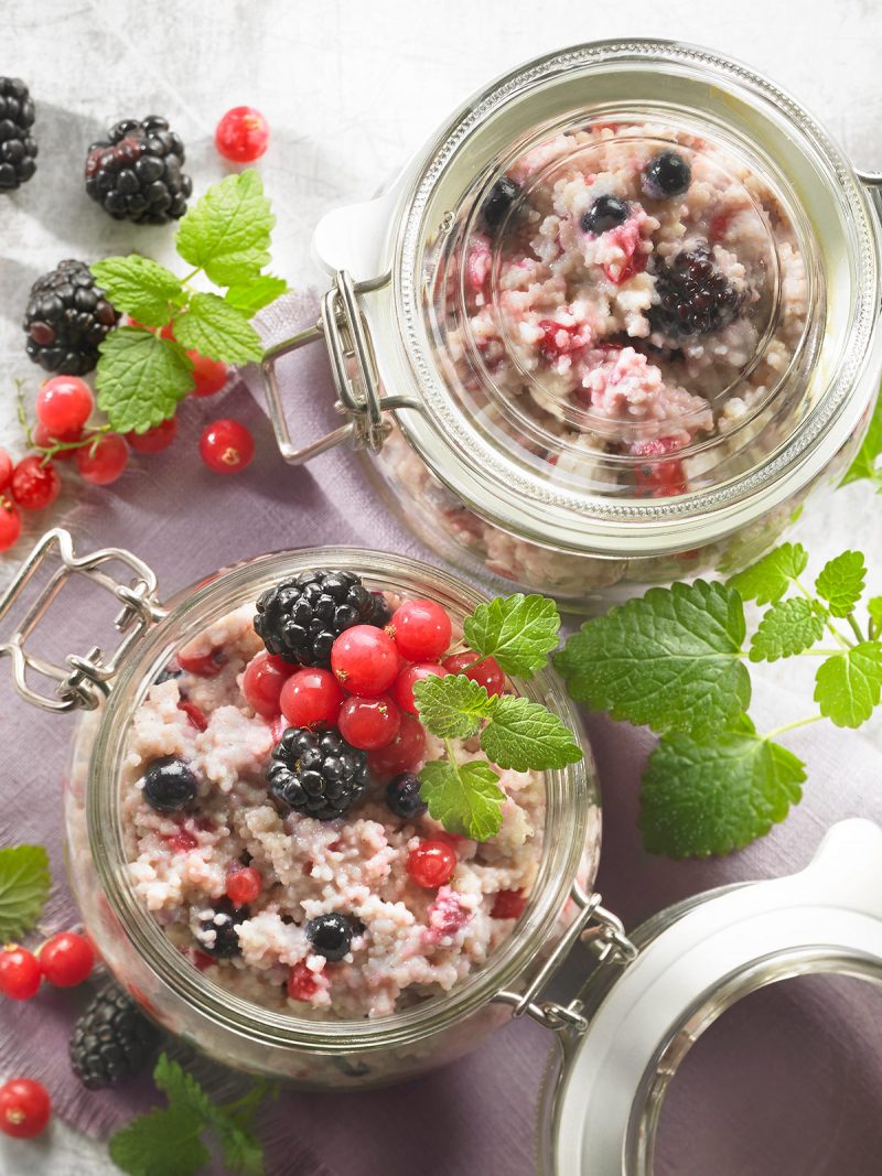 Tipp: Dieser Frühstücksgrieß mit Beeren eignet sich perfekt für unterwegs. Einfach in ein Schraubglas oder eine dichte Dose füllen – Löffel nicht vergessen!