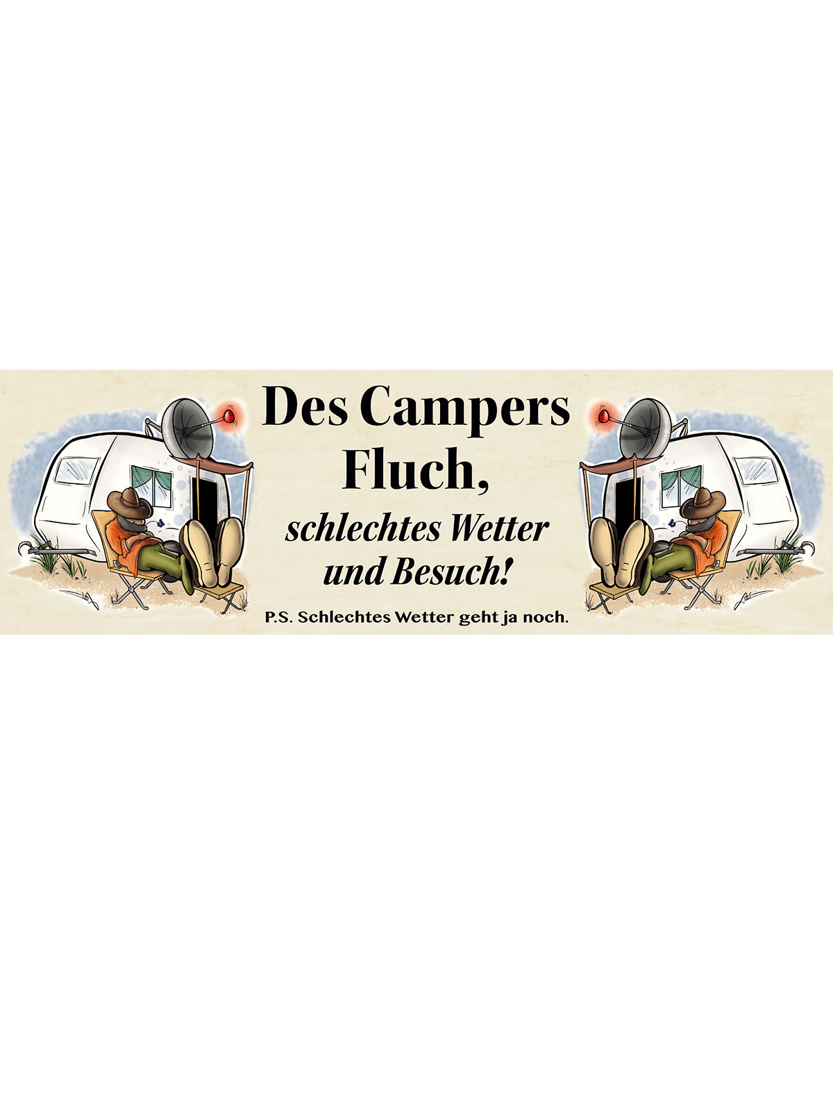 Sag es ohne Worte! Mit dem rundherum bedruckten Emaillebecher mit dem Spruch „Des Campers Fluch, schlechtes Wetter und Besuch“ gibt der echte Camper auf neckische Weise bekannt, was er am wenigsten mag. Wunderschöne Geschenkidee für alle Camper:innen. Material: Emaille. Handwäsche empfohlen. Nicht für die Mikrowelle geeignet. Fassungsvermögen: ca. 500 ml. Höhe: ca. 8 cm.