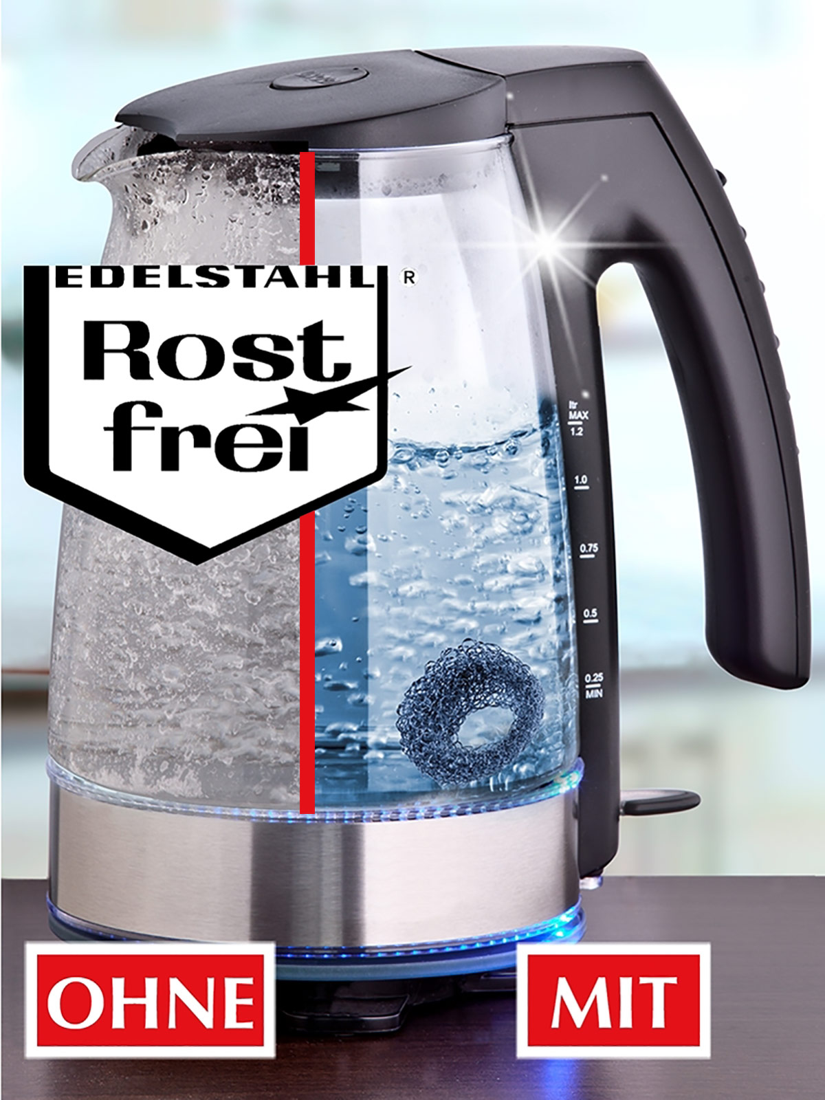 Der umweltfreundliche Kalkfänger für Kessel oder elektrischen Wasserkocher. Der Kalkfänger filtert Kalk heraus, ganz ohne Chemie. Einfach den Edelstahlring in das entsprechende Gerät legen und mit aufkochen. Mit jeder Benutzung lagert sich der Kalk nun an den Edelstahlmaschen ab und nicht an den Wänden des Gerätes. Spart Zeit und Energie. Ø ca. 4 cm. Zum Reinigen gelegentlich ausklopfen.
