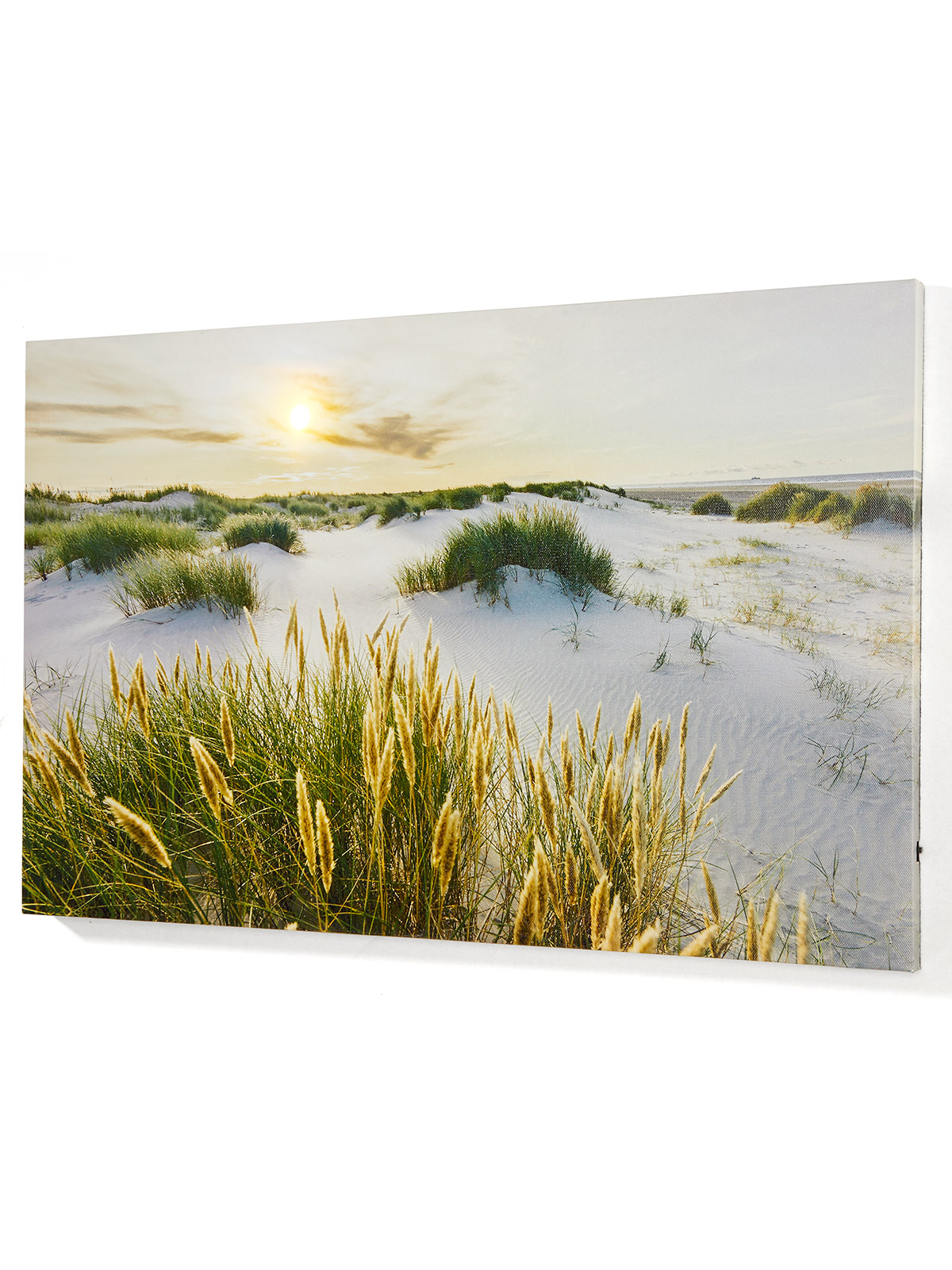 Romantik pur mit LED-Sonne! Dieser romantische Fotodruck auf Leinwand mit Sonnenuntergangs-Motiv macht Ihr Zuhause im Handumdrehen gemütlicher. Eine LED beleuchtet stimmungsvoll die Abendsonne von hinten. An-/Ausschalter an der Seite. Batteriefach auf der Rückseite: 2 x AA (nicht enthalten). Tipp: gleich mitbestellen! Mit Fernbedienung. H/B: ca. 35 x 55 cm.