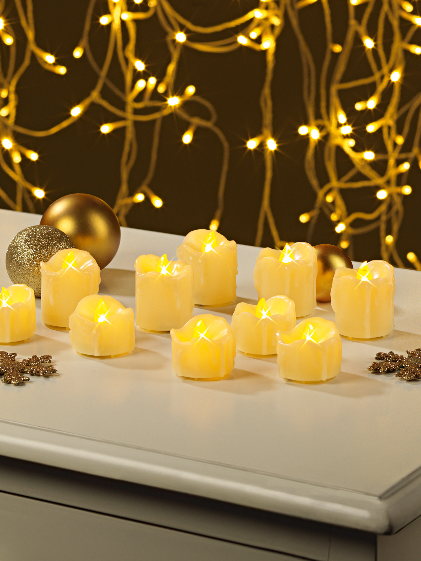 Mit den verblüffend echt aussehenden LED-Echtwachs-Kerzen zaubern Sie eine urgemütliche Atmosphäre in Ihr Zuhause. Die eingesetzten LED-Lichter imitieren das Licht einer herkömmlichen Kerze täuschend echt. Einfach einschalten und romantisches Kerzenlicht genießen – ohne Rußen und Wachstropfen. Lieferumfang: 10 Echtwachskerzen, 10 x 3 V Knopfzellenbatterie Typ CR2032 plus Anleitung. Höhe: je 5 x 4 und 5 x 5 cm.