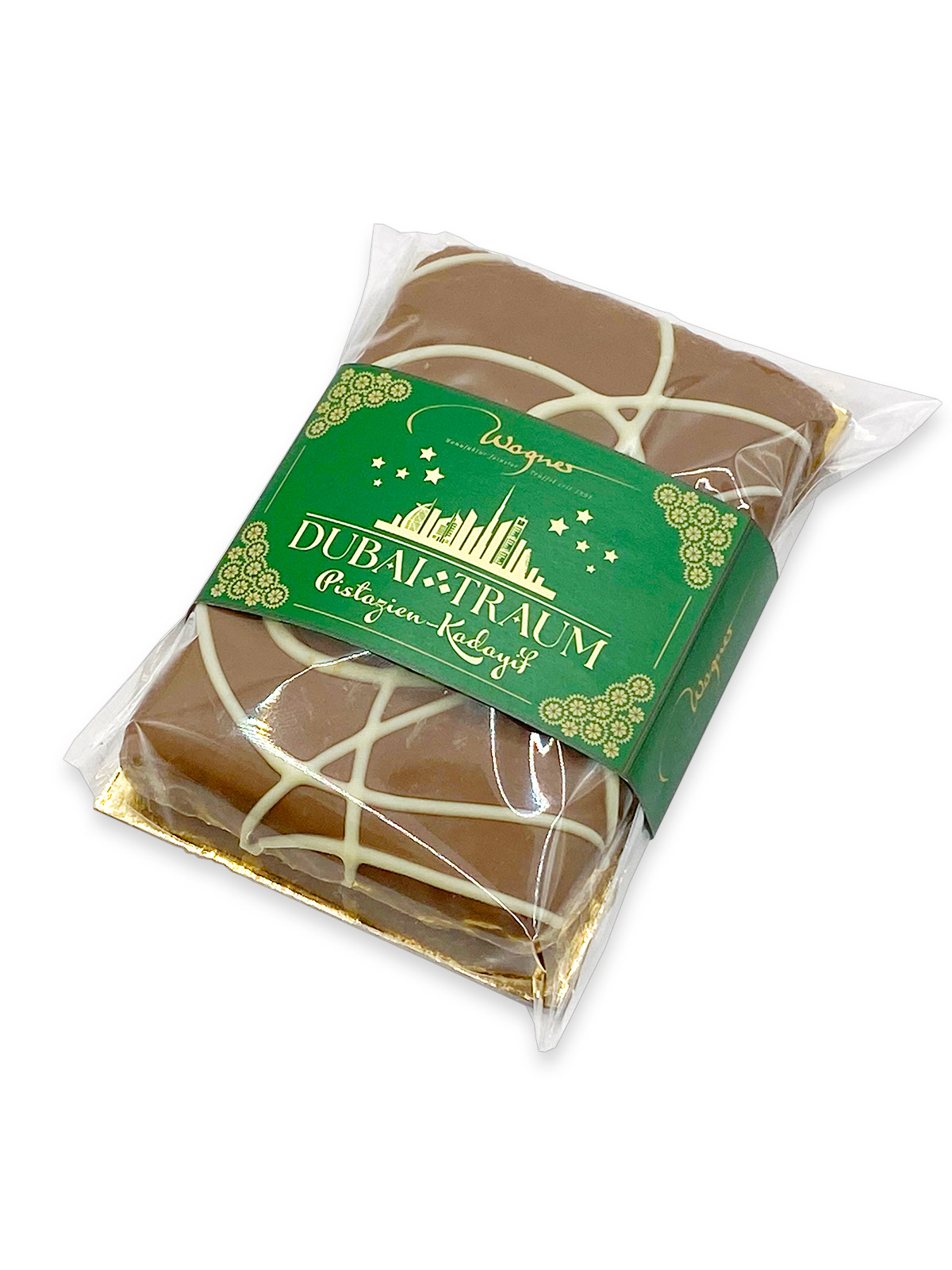 Trend-Nascherei mit cremig-crunchiger Kadayif-Füllung! Die orientalische Kadayif-Gebäck-Füllung aus saftiger, fein gehackter Pistazienmasse und knusprig-süßen Karamellfäden macht diese Vollmilch-Schokolade zu einer reinen Verführung. Jetzt wissen Sie, warum der Trend „Dubai-Schokolade“ zu Recht entstand. 140 g.