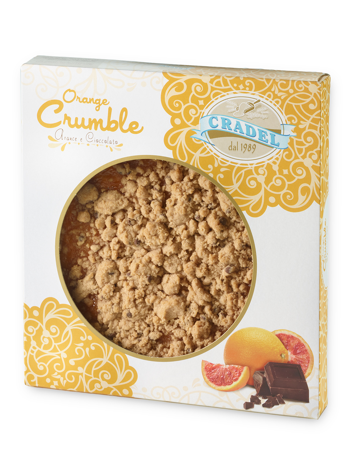 Knusprig-süße Tortenspezialität aus Italien! Erst krachen die knusprigen Streusel mit zartbitteren Schokoladen-Tropfen im Mund, dann schmecken Sie die süß-aromatische Füllung aus sonnenverwöhnten Orangen und als Höhepunkt kommt der herrlich buttrige Mürbeteigboden zu diesem Geschmackerlebnis hinzu! Diese fruchtige Streuselspezialität, mit viel Liebe zum Backen handgefertigt in Italien, ist im schönen Geschenkkarton mit Sichtfenster verpackt und findet zu jedem Fest und Anlass hervorragenden Anklang. 350 g.